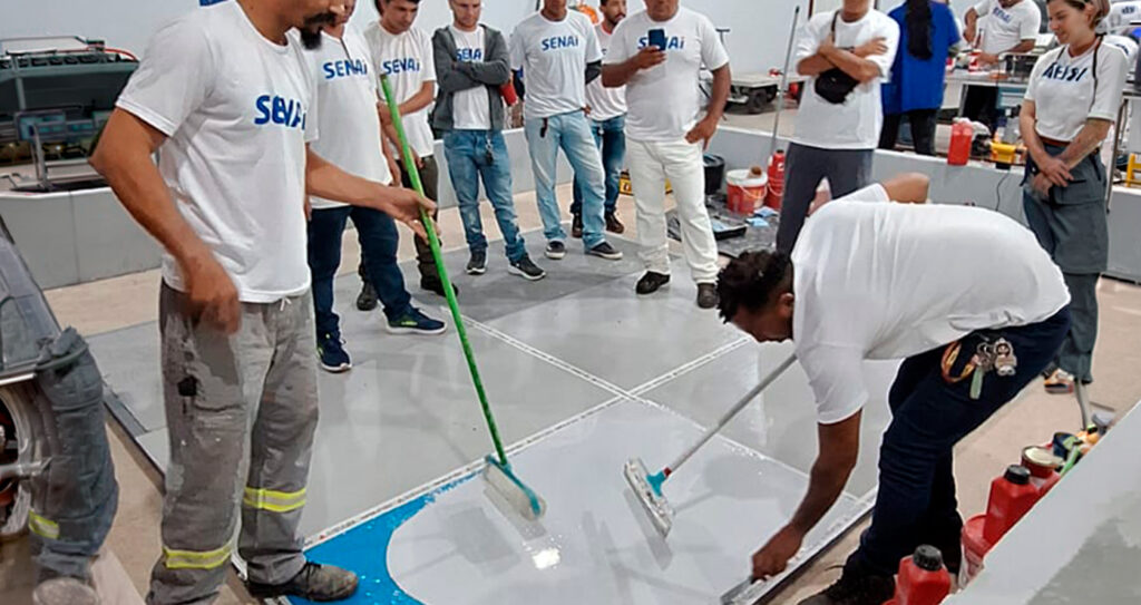 A Polipiso, por meio de seu departamento técnico, realizou treinamentos especializados no SENAI, voltados à capacitação de profissionais para aplicação de sistemas de revestimentos industriais.